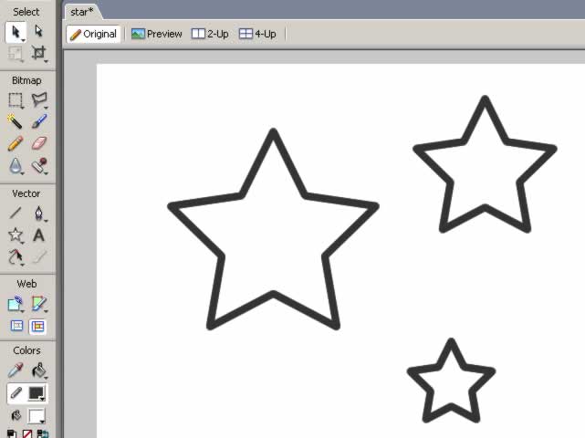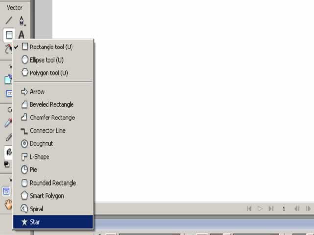 Next make a new file in fireworks. Then select the vector shape tool in the left bar, and choose a shape of your choice.